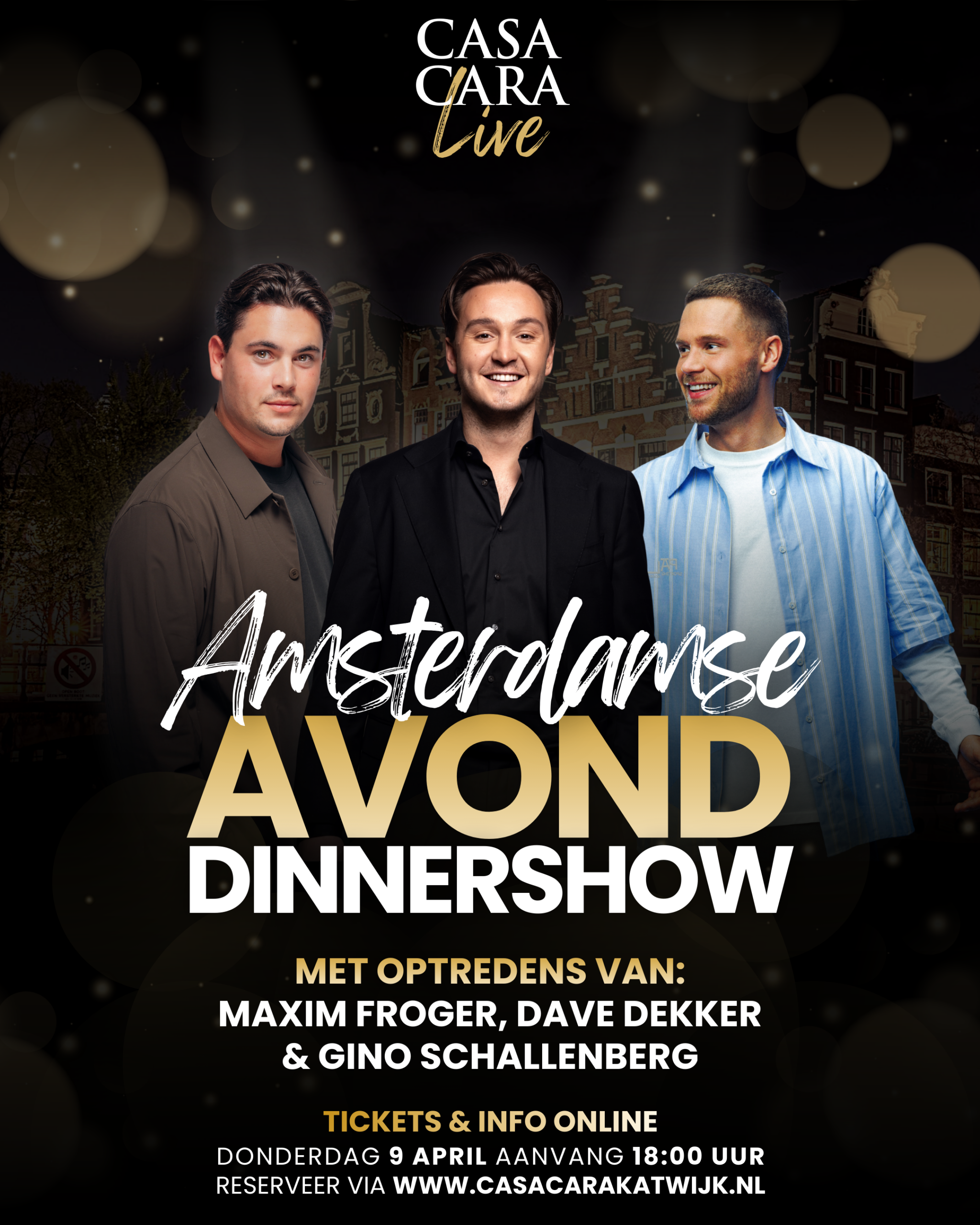Op 9 april brengen we een avond vol muziek, gezelligheid en heerlijk eten. Geniet van een compleet verzorgde 3-gangen diner terwijl je wordt vermaakt door: Gino Schallenberg, Maxim Froger & Dave Dekker